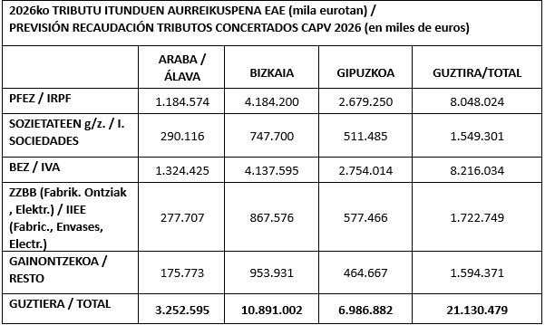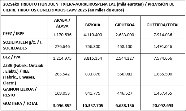 Así, este crecimiento del 10% es el resultado de una subida del 13% en los ingresos que pagan los trabajadores por IRPF y una subida del 10 por IVA. Otros impuestos, como en Sociedades, que es el que muestra la marcha de la economía real, han bajado un 14%, mostrando la mala marcha de las empresas vascas en este año 2025.